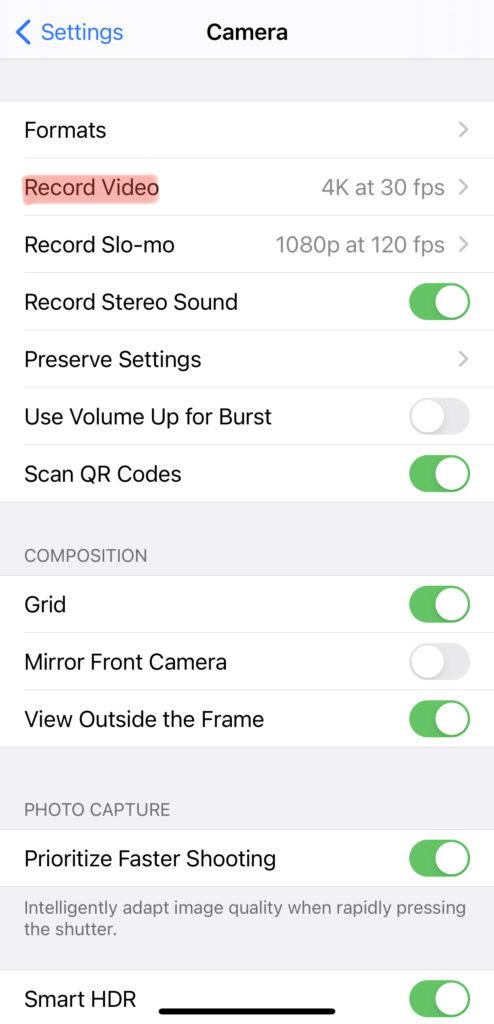 撮ったものを書き出す時も大事ですが、とりあえず、まずはiPhoneのカメラ設定を見直しました。