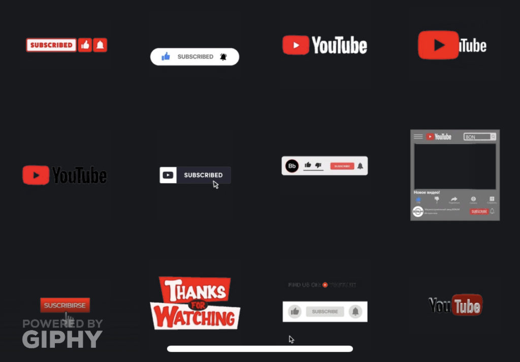 5、私は”subscribe”というワードで検索しました。いくつかそれ関連のアニメーションステッカーが下にたくさん表示されます。